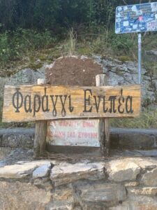 You can stop at the waterfall, take some fantastic photos, and go back to the town, or you can follow the 9 km route alongside the Enipeas River Valley. As the hike is easy, you only need to watch out when another group of hikers appears. I listened to the sounds of the running stream and admired the surrounding nature of the valley, making it feel like a walking meditation: beautiful and calm.