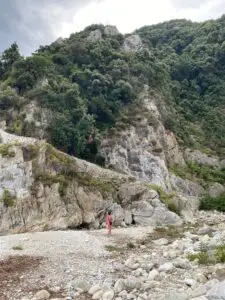 I adore the fact that in summer one can easily combine a half-day hiking in the lush forest with a relaxing afternoon on the beach. After wandering around the charming Tsagkarada village and admiring its enormous plane tree on Agia Paraskevi Square, we decided to head down to the white pebbled Milopotamos beach, which is often mentioned as the most exotic beach on the Pelion. Encompassed by pine trees and astonishing rock formations, it is undoubtedly a glorious place to relax and enjoy a swim. A large cave provides shade for the swimmers. It can be reached through a natural archway which is often occupied by visitors enthusiastically taking pictures of each other.