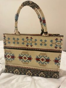 This year I found a shop with individual and contemporary designs. Their bags were all so colourful and stylish, made from natural materials (cotton, leather, rugs and burlap). Some of them were on sale, so I had to go back and take another look. Unsurprisingly, I ended up buying one; I was drawn to the colours, the size and the quality of the bag. I’m sure I will get a lot of use out of it! It was made in Electra’s workshop. I had to look it up on the internet, and this is what I have found: